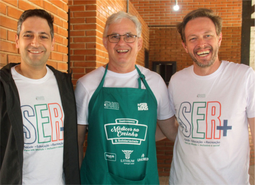 Novamente um grupo de médicos, coordenados pelo Dr. Antônio Garcia com apoio da Dra. Ana Stratmann, Dr, Gabriel El-Kouba Jr, Dr. Claudio Amaral, Dr. Mauro Santhiago Pimentel e sua esposa Mari com amigos e voluntários da promoção Médicos na Cozinha, como os empresários Marcos Liberato da Lithum Energia Solar (também patrocinadora do evento) e Thiago Rieper, da Clínica Voe, ajudaram no preparo da feijoada, trabalhando desde cedo para oferecer a melhor comida. O chefe Adriano Valente também reforçou o time dando todo o suporte. Além disso, os diretores Demelise Demczuk, Dr. Fabiano Schwingel e Dr. Alex Belo, participaram ativamente apoiando na infra-estrutura com os demais colegas. Conforme o presidente da SJM, Dr. Claudio Amaral, no segundo semestre deste ano, o projeto social SER MAIS, ampliou mais um dia de atendimento das 38 crianças, com inserção de mais três atividades: o judô, o Clube de Xadrez e as aulas de reforço escolar.