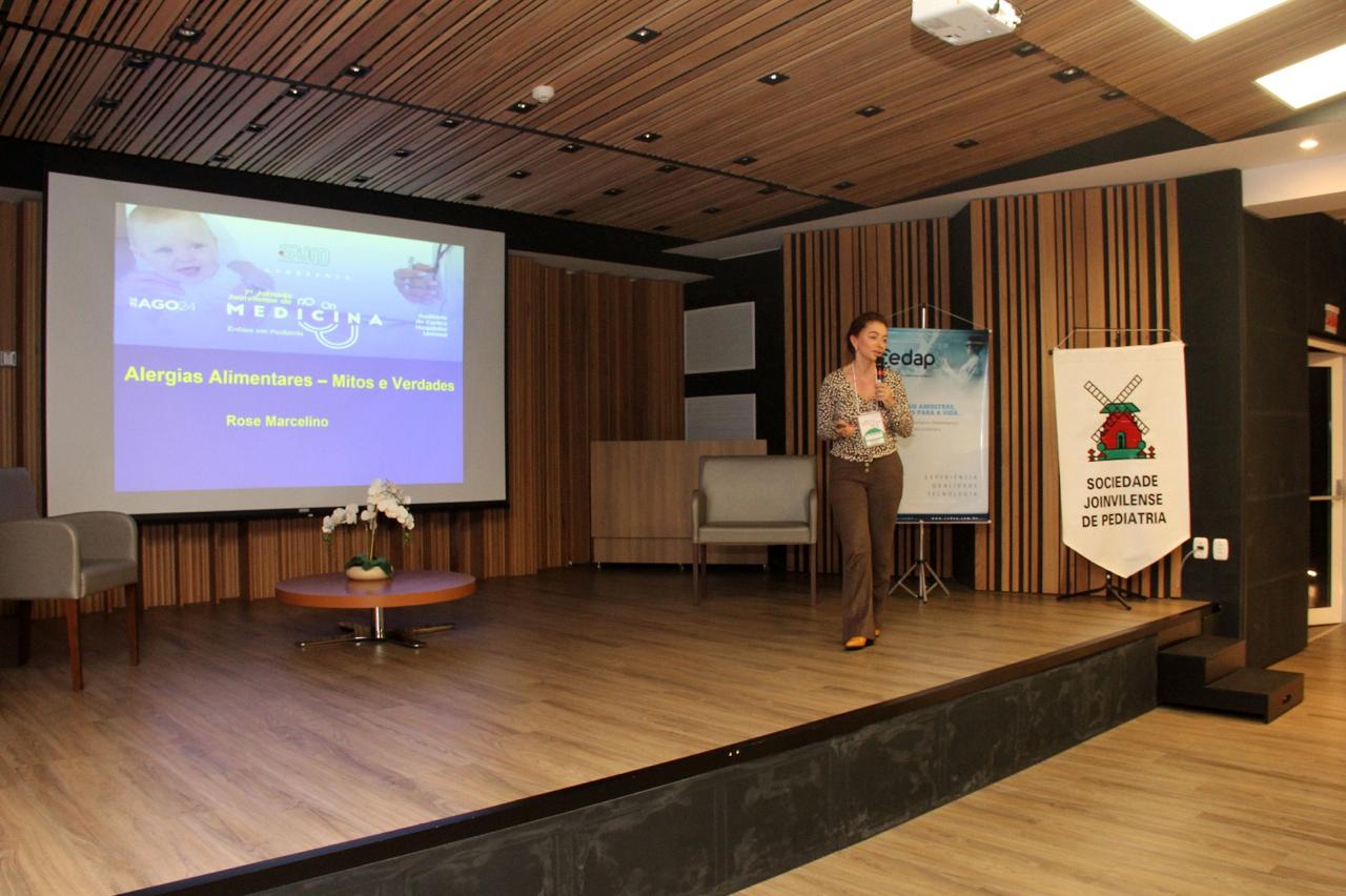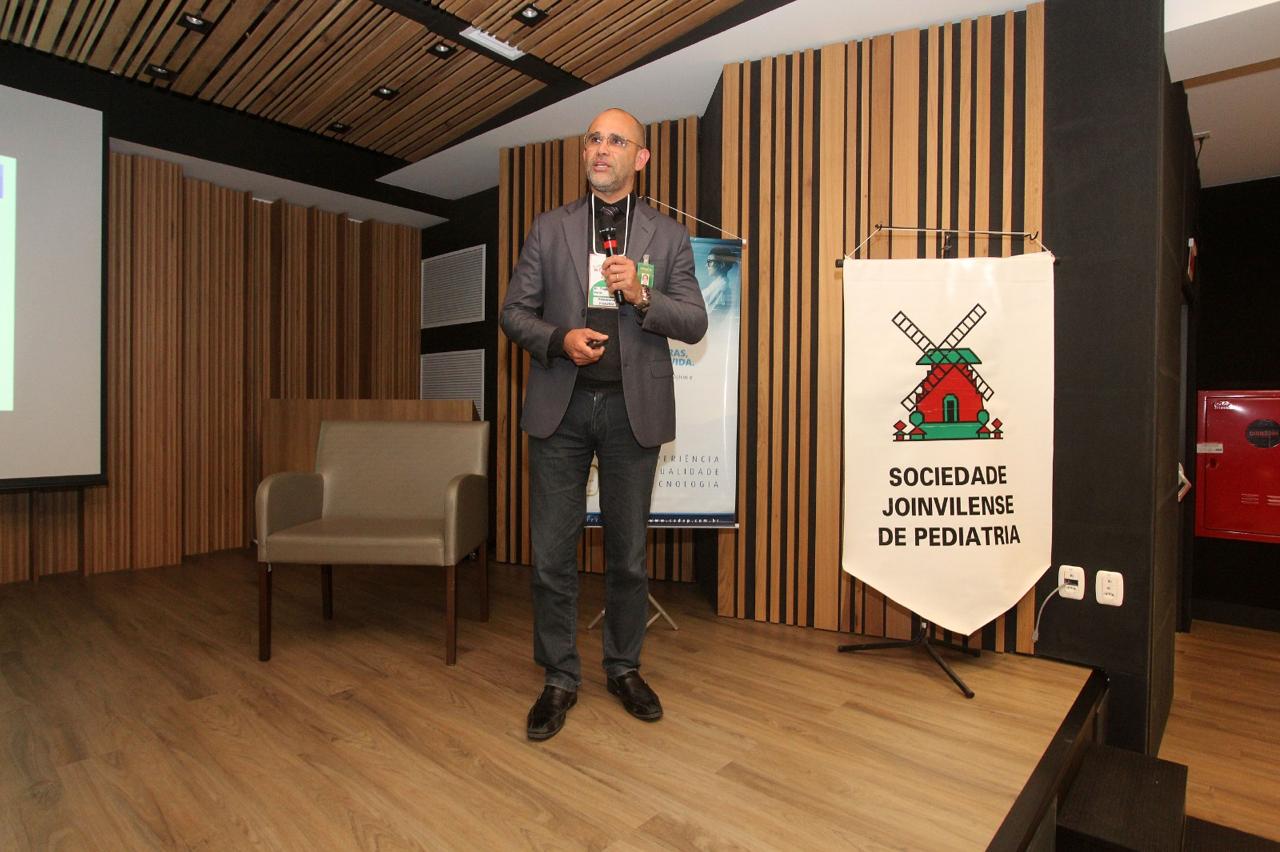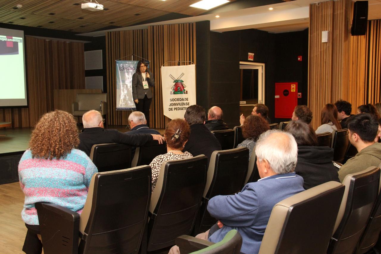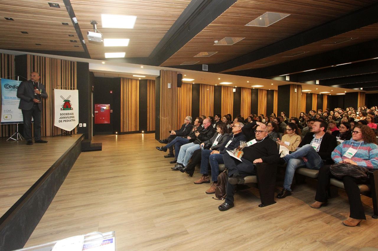 A 7’ Jornada Joinvilense de Medicina com ênfase em Pediatria, que aconteceu nos dias 14 e 15 de agosto, no auditório do Centro Hospitalar Unimed teve êxito absoluto em todos os aspectos. Realizado pela Sociedade Joinvilense de Medicina (SJM) com apoio da Sociedade Joinvilense de Pediatria (SJP), teve 170 inscritos, que lotaram o auditório. Na primeira noite foram cinco palestras com participação dos seguintes especialistas: Dr. Tarcísio Crócomo que falou sobre Hesitação Vacinal. Logo em seguida Dr. Tiago Neves Veras abordou o tema Bronquiolite e Vírus USR. O que há de novo? Logo depois Dr. Felipe Becker falou sobre os Distúrbios do Sono Vs Uso de Telas. Após o intervalo foi a vez da Dra. Laura Rech Gomes Gregol discorrer sobre o tema Seguimento Ambulatorial do Prematuro, do Neonatologista para o Pediatra. A primeira noite foi encerrada pela Dra. Rose Marcelino, que falou sobre as Alergias Alimentares: Mitos e Verdades. Um agradecimento especial aos especialistas palestrantes pelo excelente nível das aulas e pelo público que prestigiou o evento com entusiasmo.