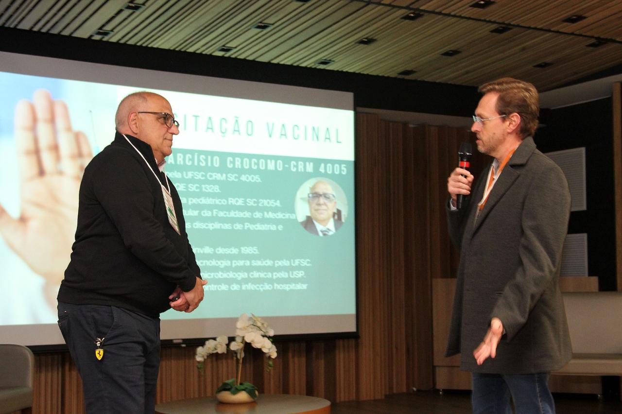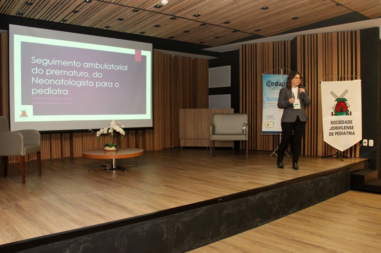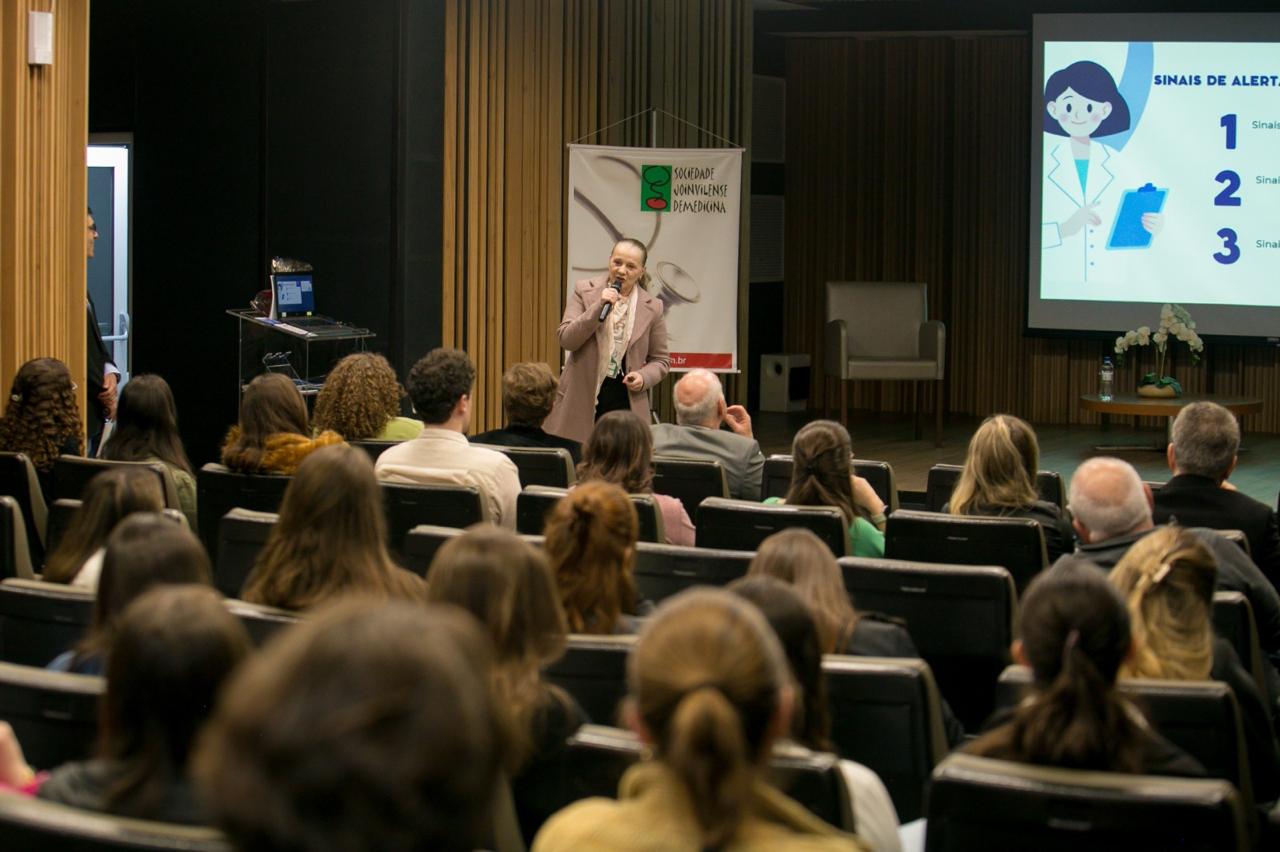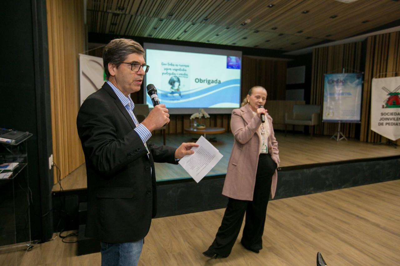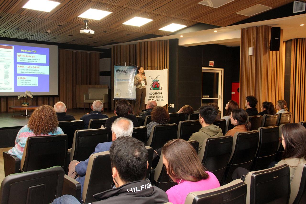 A 7’ Jornada Joinvilense de Medicina com ênfase em Pediatria, que aconteceu nos dias 14 e 15 de agosto, no auditório do Centro Hospitalar Unimed teve êxito absoluto em todos os aspectos. Realizado pela Sociedade Joinvilense de Medicina (SJM) com apoio da Sociedade Joinvilense de Pediatria (SJP), teve 170 inscritos, que lotaram o auditório. Na primeira noite foram cinco palestras com participação dos seguintes especialistas: Dr. Tarcísio Crócomo que falou sobre Hesitação Vacinal. Logo em seguida Dr. Tiago Neves Veras abordou o tema Bronquiolite e Vírus USR. O que há de novo? Logo depois Dr. Felipe Becker falou sobre os Distúrbios do Sono Vs Uso de Telas. Após o intervalo foi a vez da Dra. Laura Rech Gomes Gregol discorrer sobre o tema Seguimento Ambulatorial do Prematuro, do Neonatologista para o Pediatra. A primeira noite foi encerrada pela Dra. Rose Marcelino, que falou sobre as Alergias Alimentares: Mitos e Verdades. Um agradecimento especial aos especialistas palestrantes pelo excelente nível das aulas e pelo público que prestigiou o evento com entusiasmo.