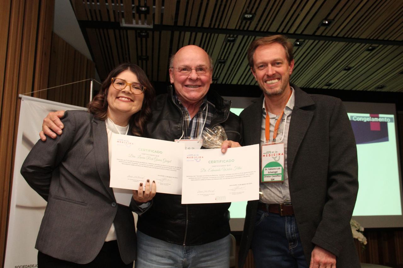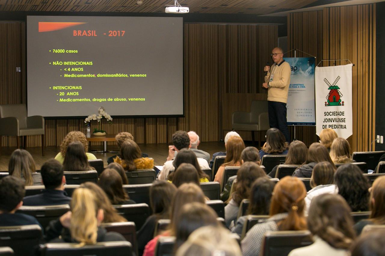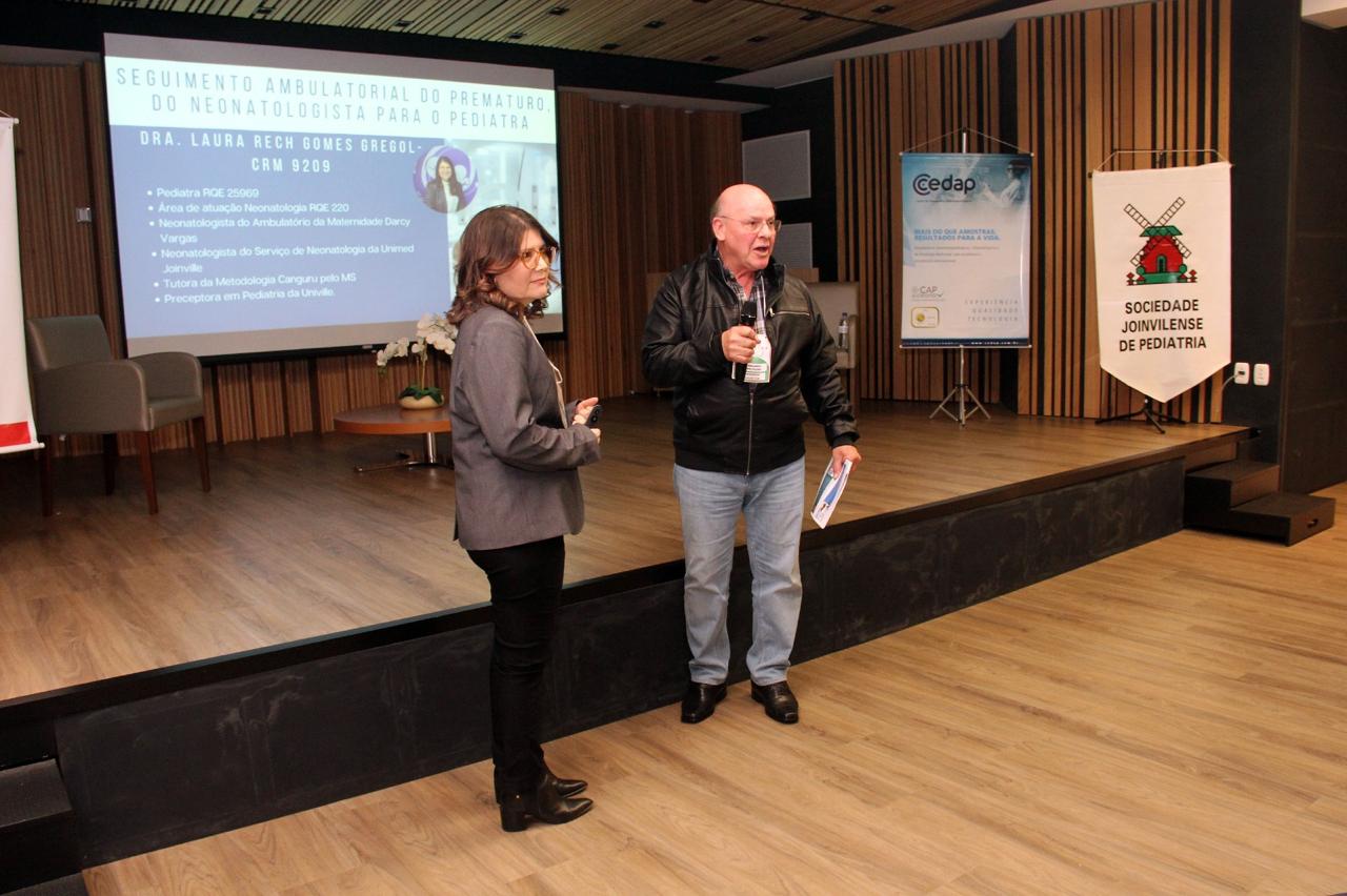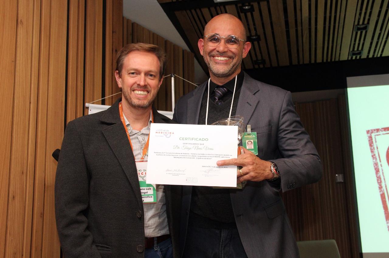 A 7’ Jornada Joinvilense de Medicina com ênfase em Pediatria, que aconteceu nos dias 14 e 15 de agosto, no auditório do Centro Hospitalar Unimed teve êxito absoluto em todos os aspectos. Realizado pela Sociedade Joinvilense de Medicina (SJM) com apoio da Sociedade Joinvilense de Pediatria (SJP), teve 170 inscritos, que lotaram o auditório. Na primeira noite foram cinco palestras com participação dos seguintes especialistas: Dr. Tarcísio Crócomo que falou sobre Hesitação Vacinal. Logo em seguida Dr. Tiago Neves Veras abordou o tema Bronquiolite e Vírus USR. O que há de novo? Logo depois Dr. Felipe Becker falou sobre os Distúrbios do Sono Vs Uso de Telas. Após o intervalo foi a vez da Dra. Laura Rech Gomes Gregol discorrer sobre o tema Seguimento Ambulatorial do Prematuro, do Neonatologista para o Pediatra. A primeira noite foi encerrada pela Dra. Rose Marcelino, que falou sobre as Alergias Alimentares: Mitos e Verdades. Um agradecimento especial aos especialistas palestrantes pelo excelente nível das aulas e pelo público que prestigiou o evento com entusiasmo.