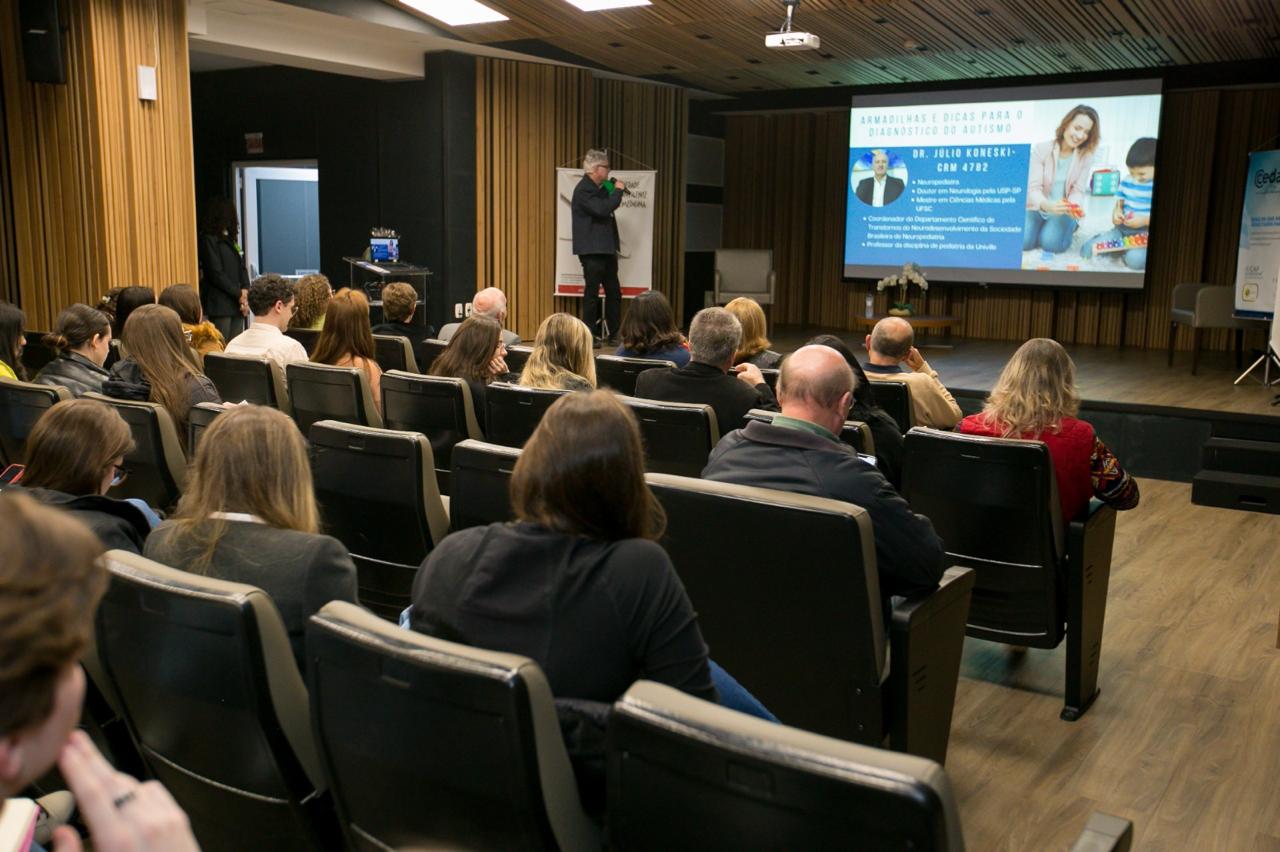 A segunda noite da VII Jornada Joinvilense de Medicina com ênfase em Pediatria, no dia 15 de agosto último, foi novamente um sucesso, com o auditório da Unimed lotado pelos 170 inscritos. As palestras foram abertas pelo neurologista Dr. Júlio Koneski que abordou o tema “Armadilhas e Dicas para o Diagnóstico do Autismo”. Em seguida foi a vez do Dr Vasco Antônio de Amorim Alcântara apresentar o tema “Intoxicações Exógenas na Infância”. A especialista Dra. Cynthia Koneski Irusta Mendes abordou o tema “Cuidados Paliativos nos Pequenos Pacientes”. Após o intervalo o médico Dr. Francisco Pabis discorreu sobre “Emergências Cardiológicas em Pediatria. E para encerrar esta sétima jornada, foi convidada a médica Dra. Aline Hanauer, com o tema “Pediatria e Defesa das Crianças: sinais de alerta nas consultas”. Dr. Fabiano Schwingel, Diretor Científico da SJM agradeceu a Unimed Joinville e CHU pela parceria e apoio, a SJP na pessoa da presidente Dra. Scheila Siebeneicher, aos apoiadores Cedap, Unicred e Laboratório Gimenes. Também destacou o excelente nível das aulas e ao público que mais uma vez torvou o evento um sucesso.